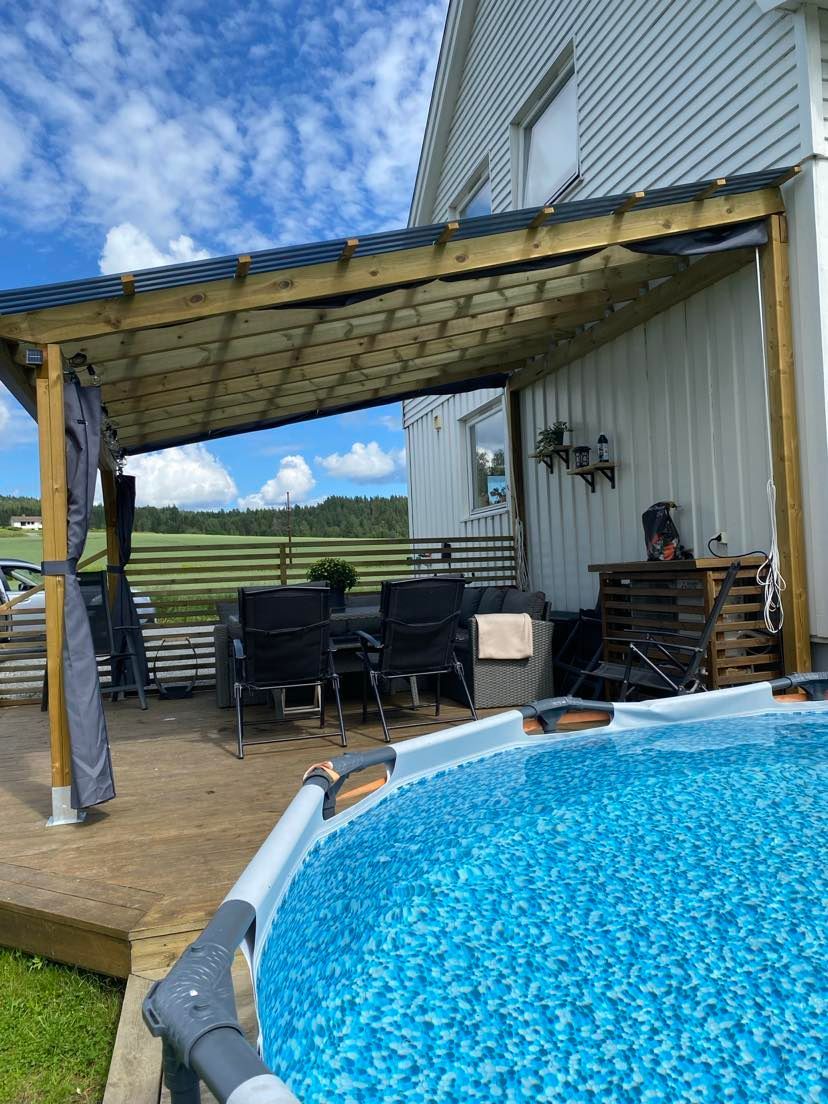 Forefallende "småplukk" som å fikse ei list her og bytte ut en plank der. I tillegg har jeg hatt større prosjekter som å bygge veranda.